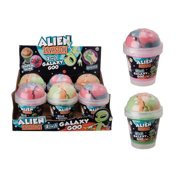 Alien Invasion 2 in 1 Galaxy Goo gives you an out-of-this-world sensory experience! It includes two exciting textures in one pocket-sized toy! Bursting with vibrant, galactic colours, this dual-texture slime provides endless fun for young galaxy explorers, combining creativity and hands-on sensory play. Alien Invasion 2 in 1 Galaxy Goo sparks children's curiosity and imagination. Suitable for ages 3 years and up.