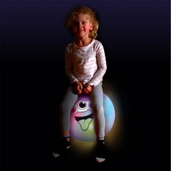 Junior-size translucent Space Hopper with light-up LED balls inside. As the hopper bounces the motion-triggered balls inside it will light-up and flash, making a dazzling display inside as it hops along. It inflates to 60cm, making it the ideal size for children to use.