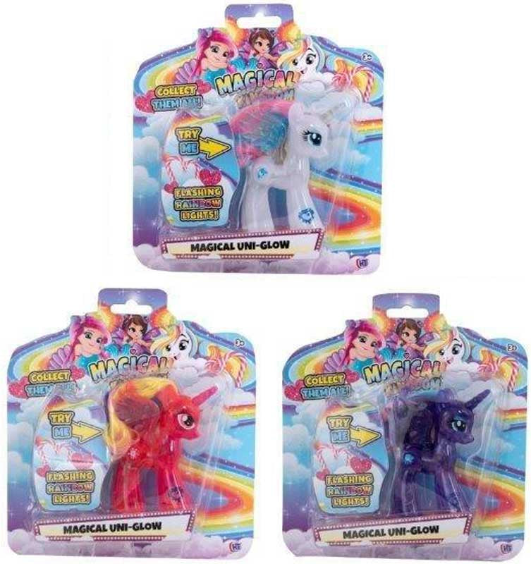 | Press the button and watch them light up with flashing rainbow lights! There are 3 to collect. Suitable for ages 3 years and above. Random colour sent |