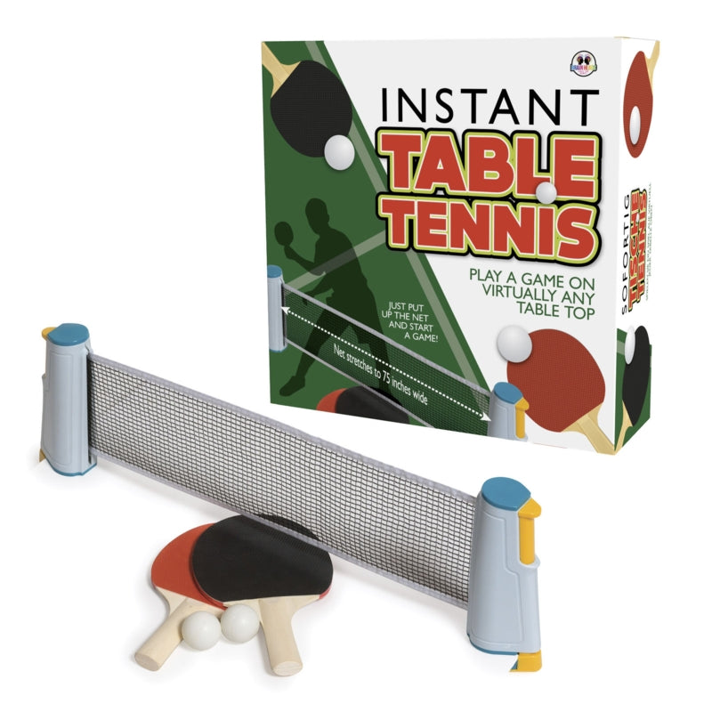 A clever table tennis set that allows you to play the game on virtually any table top.